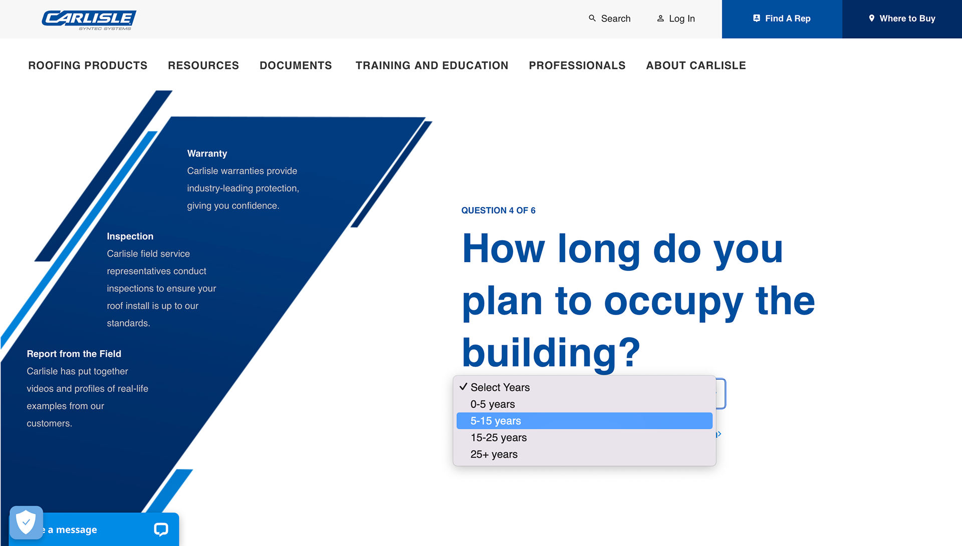 Goals: Develop a demand generation tool to help building owners and facility managers find the right roofing system. The tool, based on market research conducted by Walker Information, asks five simple questions and provides a recommendation. It has an impressive 11% conversion rate and was a critical component of the demand-generation strategy.